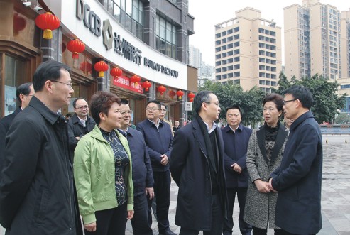 四川省人大常委会副主任、达州市委书记包惠(前排左二),四川省副省长李云泽(前排右二)在达州银行营业大厅考察